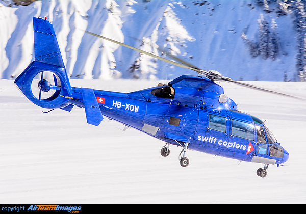 We offer an exciting range of print and gift options all of which are custom made using any of the images in our library. This page allows you to add selected items to your basket based on the image of the Aerospatiale AS-365 Dauphin 2 Swift Copters HB-XQW displayed to the left.
