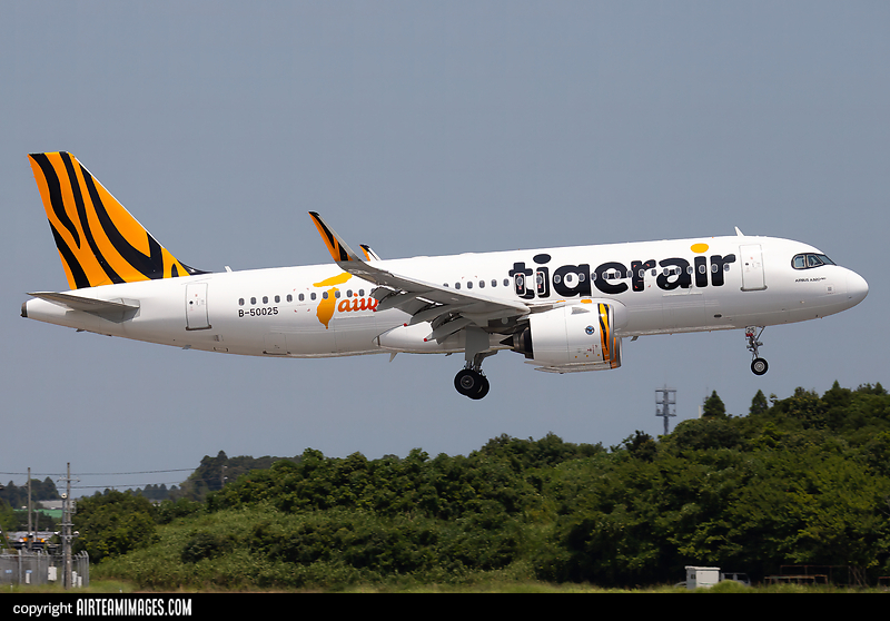We offer an exciting range of print and gift options all of which are custom made using any of the images in our library. This page allows you to add selected items to your basket based on the image of the Airbus A320-271N Tigerair Taiwan B-50025 displayed to the left.