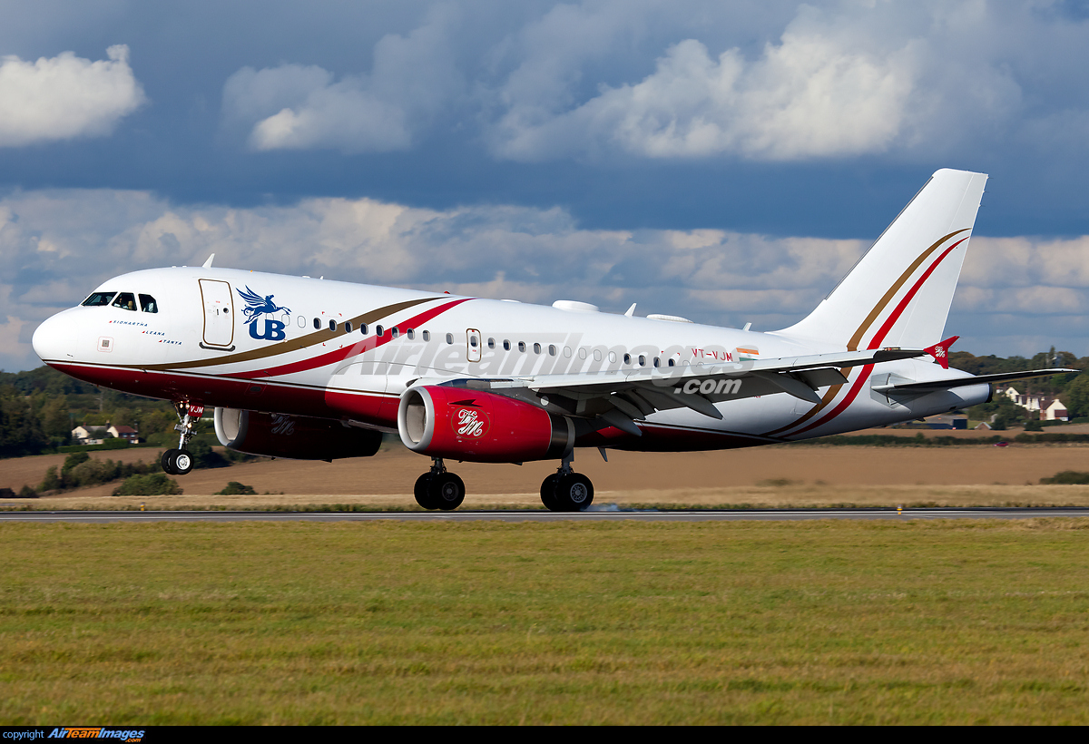 - ACJ VT-VJM arrives at Luton from Manchester in a revised colour scheme after the demise of Kingfisher Airlines.