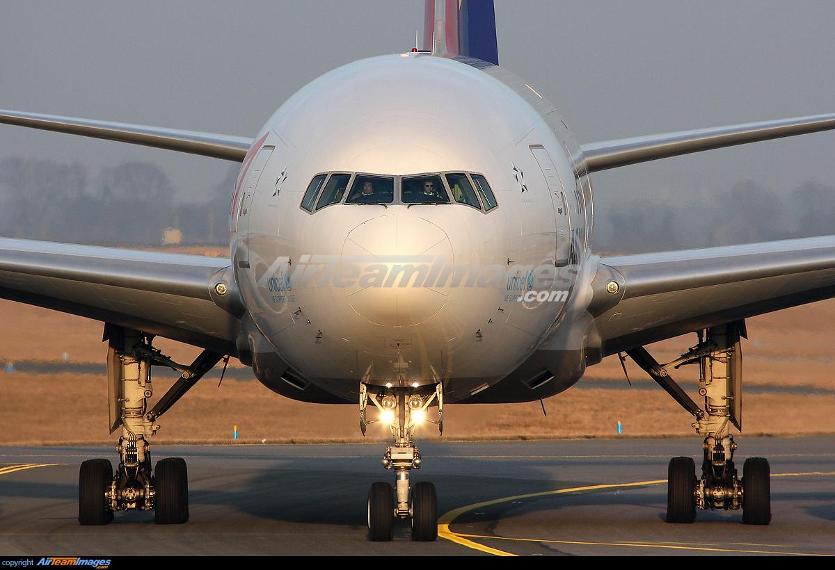 The Boeing 777 is the world's largest twinjet and commonly referred to as the "Triple Seven" Distinguishing features include the six wheels on each main landing gear. In service with many of the worlds airlines primarily for long-haul services