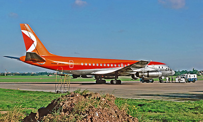 The DC-8 is a medium to long range 4 engined airliner. It was the first jet powered airliner from Douglas, and the USA's second successful jet airliner after the Boeing 707. It was developed into many variants of differing ranges and capacities.