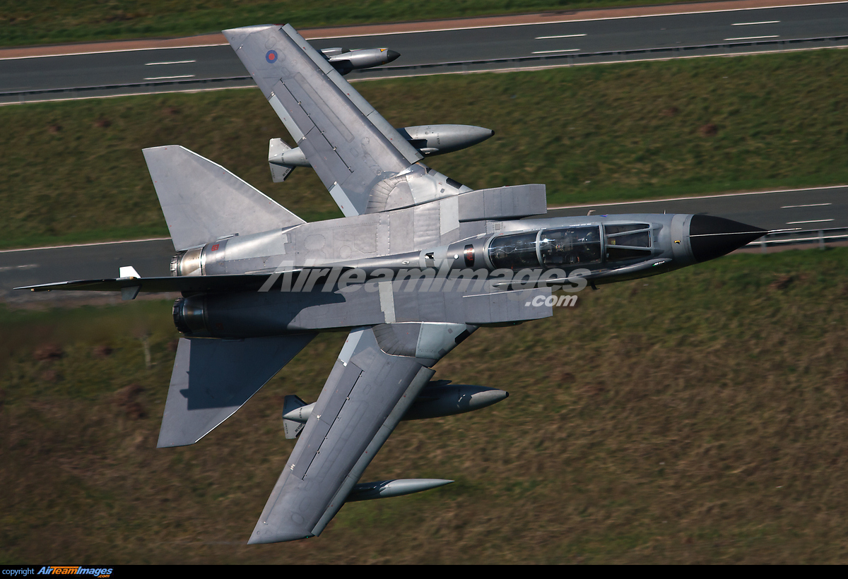 - RAF 41(R)Sqn Panavia Tornado GR4 ZA447 banking over the M6 Motorway whilst on a low level weapons evaluation sortie in Tebay, Cumbria.
