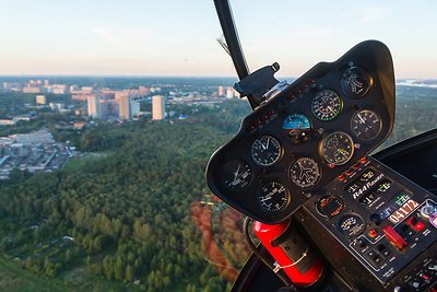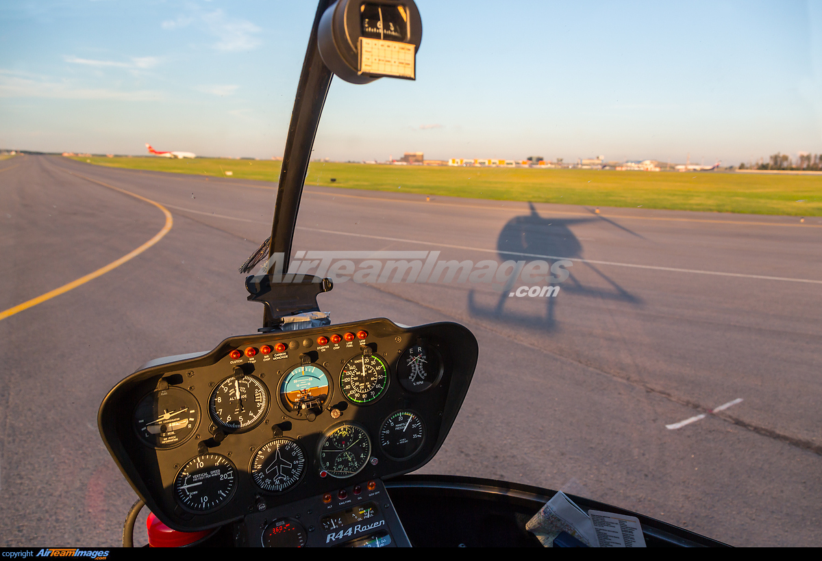 The Robinson R-44 is a small light four-seat piston-driven civilian helicopter developed from the smaller Robinson R22. The R44 is both larger and faster and also features boosted flight controls